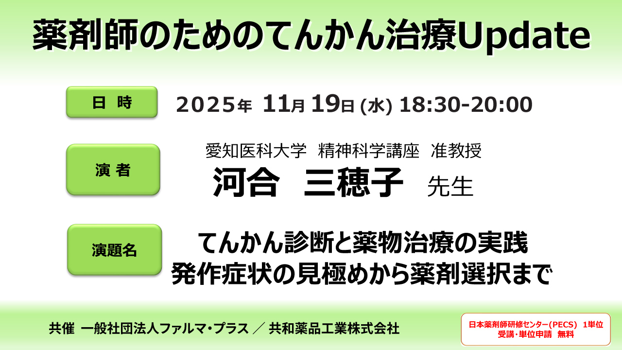 【先着 1,000名さま限定】11月19日 薬剤師のためのてんかん治療Update【無料・PECS 1単位】