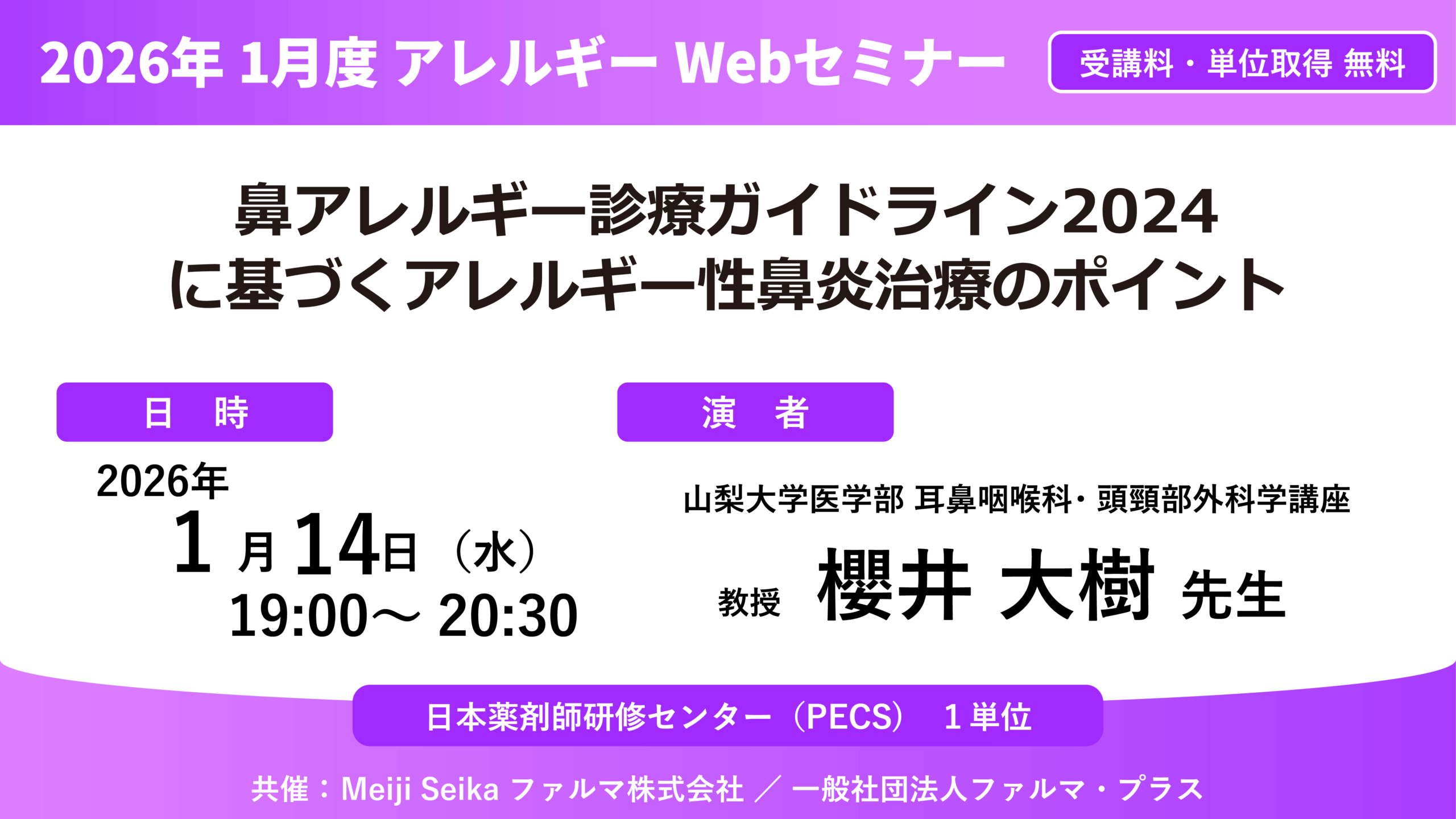 【無料・PECS1単位】2026年1月度 アレルギーWebセミナー「鼻アレルギー診療ガイドライン2024に基づくアレルギー性鼻炎治療のポイント」