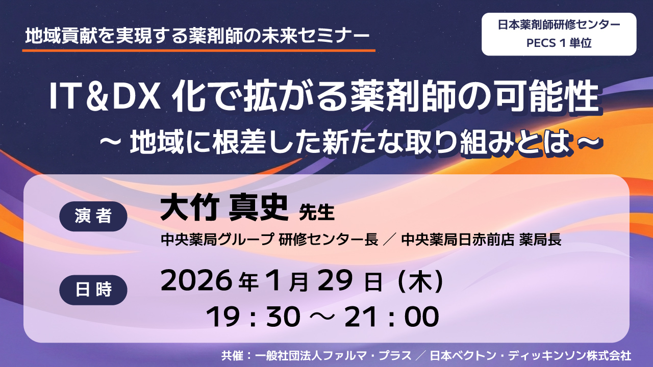 【無料・PECS1単位】地域貢献を実現する薬剤師の未来セミナー「IT&DX化で拡がる薬剤師の可能性 ~地域に根差した新たな取り組みとは~」
