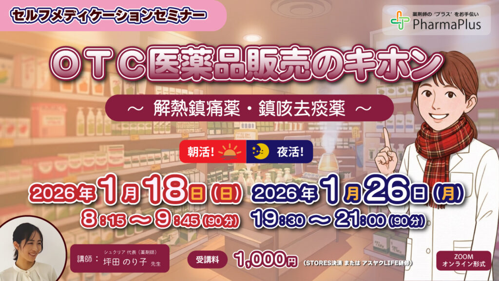 朝活!/ 夜活!「OTC医薬品販売のキホン ~ 解熱鎮痛薬・鎮咳去痰薬 ~」【PECS1単位】