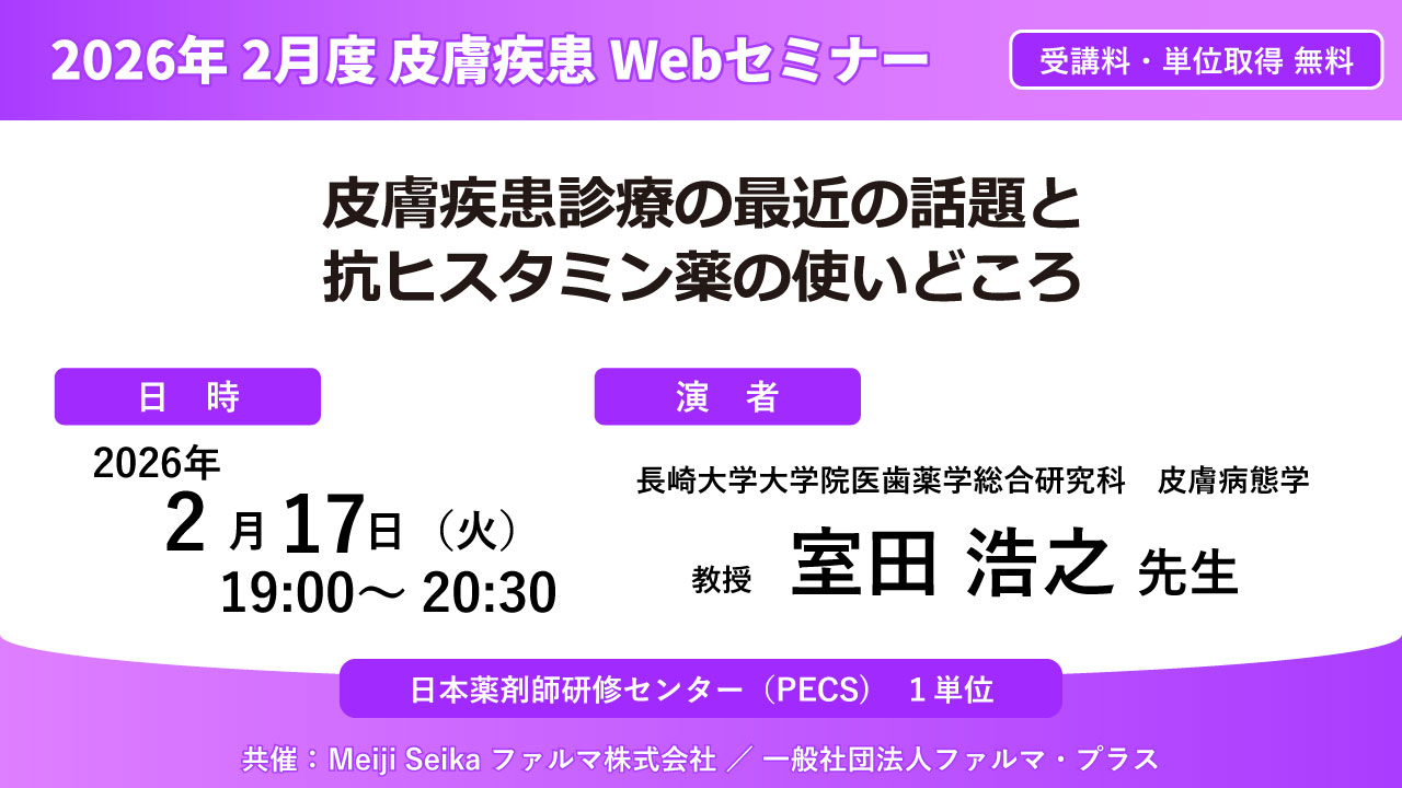 【無料・PECS1単位】2026年2月度 皮膚疾患Webセミナー「皮膚疾患診療の最近の話題と抗ヒスタミン薬の使いどころ」 ●先着3,000名
