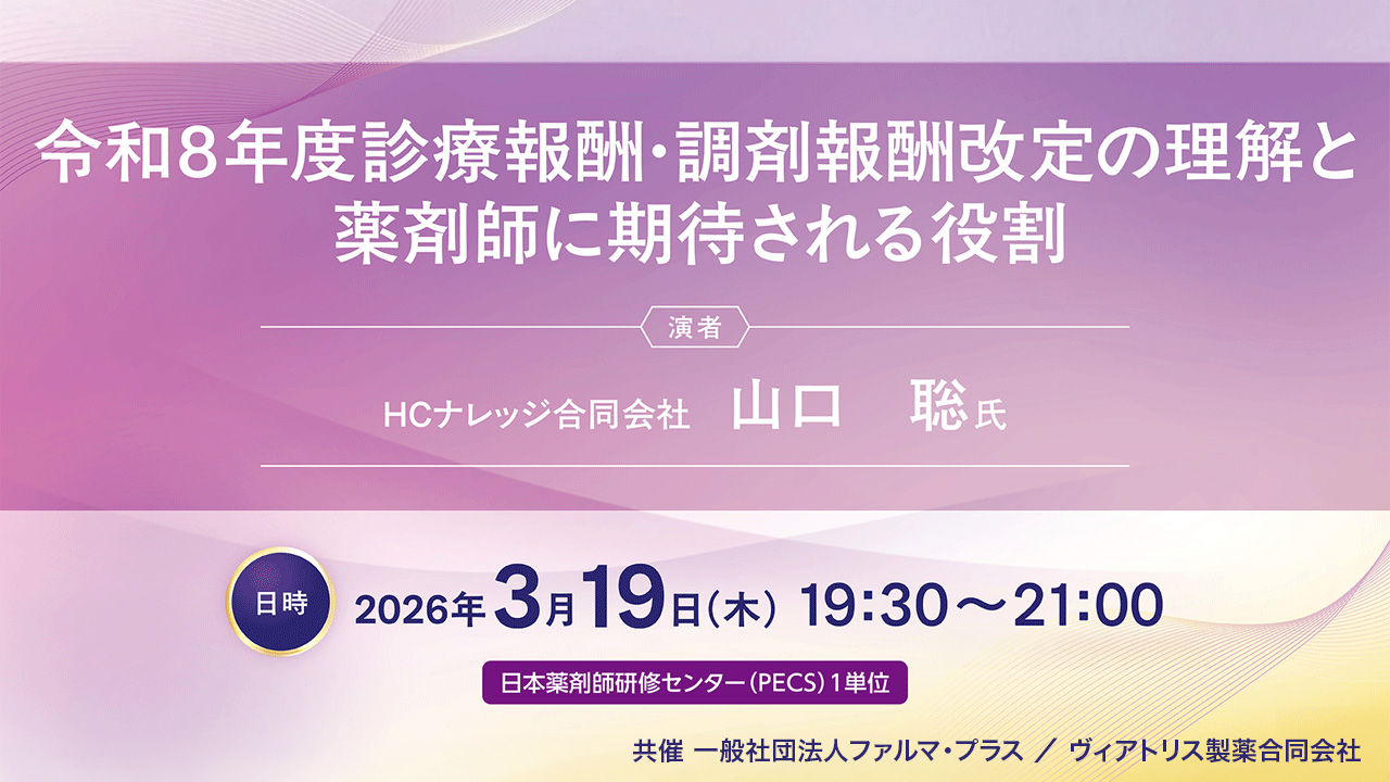 【受講無料】Web講演会「令和8年度診療報酬・調剤報酬改定の理解と薬剤師に期待される役割」【PECS 1単位】
